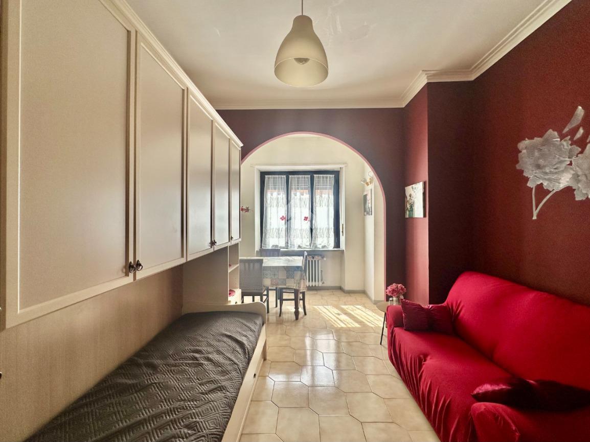 Il palazzo di sei piani è stato edificato negli anni ’60 circa ed è situato in via Casteldelfino. Comodi gli spostamenti anche grazie alla presenza dei mezzi pubblici, le linee più vicine sono quelle dei bus 10,52 e 11. Il complesso si presenta in buono stato nelle parti comuni, l’accesso avviene da un portoncino in vetro e metallo e la facciata dell’edifico è in paramano. La casa internamente è stata ristrutturata, la pavimentazione è omogenea su tutta la superficie ad esclusione del bagno. Gli infissi sono universalmente con doppio vetro e il riscaldamento di tipo centralizzato con termovalvole garantisce una buona gestione del calore interno. Dalla porta d’ingresso si accede direttamente su un grazioso piccolo disimpegno che ne divide gli ambienti, da quest’ultimo ci si affaccia sul tinello che comprende sia la zona giorno che notte. Il bagno, anch’esso finestrato, è dotato di tutti i sanitari e della vasca. Termina la proprietà la cantina al piano interrato.