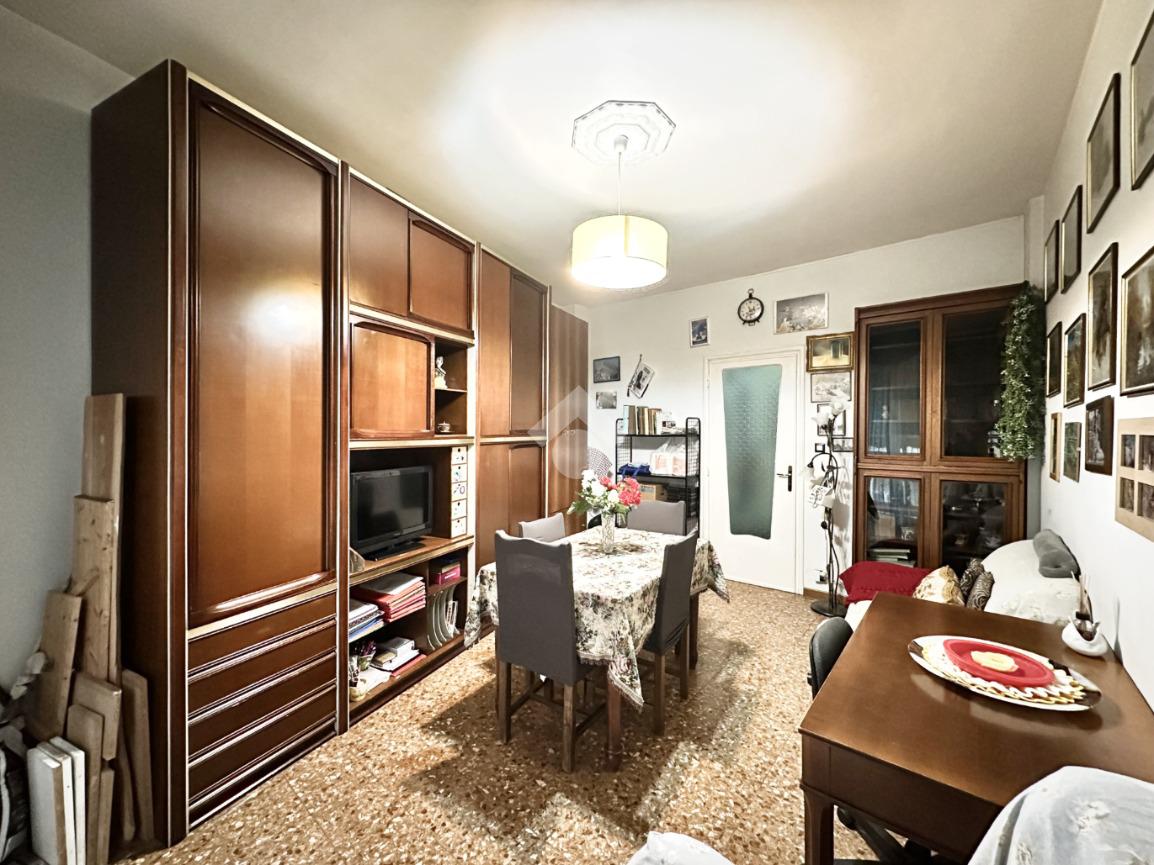 Il palazzo costruito negli anni ’60 e sviluppato su sei piani, si trova in Via Bibiana. Lo stabile si presenta in buono stato manutentivo in tutte le parti comuni, recentemente è stata effettuata la tinteggiatura delle scale. L’ascensore è accessibile senza gradini, facilitando l’ingresso anche a persone con mobilità ridotta. La posizione è ideale per chi desidera la comodità ai servizi, la via infatti è tra le arterie principali del Borgo, diversi sono i negozi e i piccoli supermercati nelle immediate vicinanze. I mezzi pubblici collegano agevolmente il quartiere al centro città che dista solo 15 minuti circa. La casa gode della doppia esposizione e dispone di due balconi, il primo serve la cucina e dispone di tende estive e invernali , mentre il secondo è a servizio di una camera e dispone delle tende estive. La casa si sviluppa su una buona metratura, è stata conservata prevalentemente nel suo stato originale, ad esclusione dell’installazione della porta blindata e degli infissi con doppio vetro in pvc. Gli spazi interni quindi si prestano ad essere vissuti da subito ma per chi lo desidera la soluzione è idonea anche ad essere personalizzata da una ristrutturazione di proprio gusto. L’ampio ingresso svolge la sua mansione disimpegnando ogni vano, è possibile inserire un armadio capiente per riporre e conservare quanto necessario all’organizzazione dei vari utensili domestici. La zona giorno è composta dalla cucina abitabile. Le camere da letto sono due, sono di taglio regolare e facilmente arredabili. Il bagno finestrato è completo di sanitari e box doccia. La cantina al piano interrato termina la proprietà.