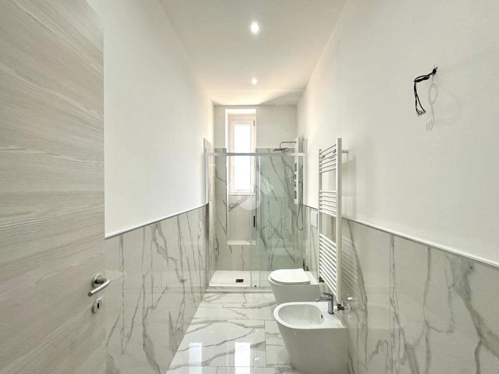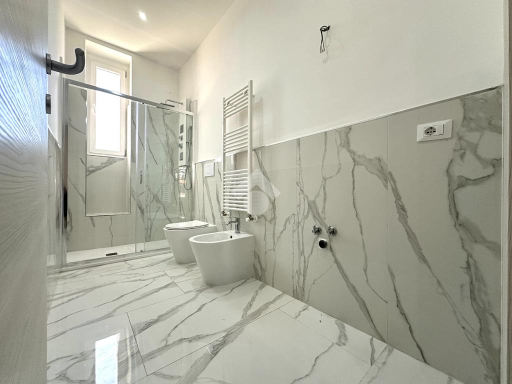 Situato nel cuore di una zona dinamica e perfettamente servita, nelle immediate vicinanze di Via Chiesa della Salute, in via Francesco Baracca sorge il complesso composto da un solo piano principale oltre al piano mansardato, si distingue per la gestione riservata, l’ottimo stato di manutenzione generale e per le contenute spese condominiali. L’appartamento, posto al primo piano, è stato oggetto di una ristrutturazione integrale e curata in ogni dettaglio nel 2025, capace di coniugare design moderno e funzionalità degli spazi. La doppia esposizione garantisce un’eccellente luminosità naturale, valorizzata dalla presenza di tre balconi di pertinenza che offrono piacevoli sfoghi esterni a tutti gli ambienti della casa. L’ingresso avviene tramite porta blindata che conduce alla zona giorno, attualmente composta da sala e cucina: la distribuzione degli spazi consente di personalizzare gli ambienti in base alle proprie esigenze, scegliendo come organizzare sala e cucina separatamente o in soluzione open space. La zona notte si compone di una spaziosa camera matrimoniale e di una seconda camera versatile, servita da un bagno privato completo di doccia, lavabo e attacchi per la lavatrice. Un secondo bagno principale, anch’esso finemente rifinito e dotato di ulteriore zona lavanderia, assicura il massimo comfort nella gestione quotidiana. Le finiture di qualità caratterizzano l’intera proprietà: la pavimentazione è realizzata in gres porcellanato effetto legno color miele, che dona calore e continuità visiva, mentre nei bagni è stata scelta una piastrella effetto marmo, per un contrasto elegante e contemporaneo. Gli infissi in PVC con doppio vetro garantiscono un ottimo isolamento termo-acustico, l’immobile è dotato di predisposizione per l’aria condizionata e di riscaldamento autonomo con caldaia nuova, per un controllo efficiente dei consumi. Completa la proprietà una comoda cantina al piano interrato.